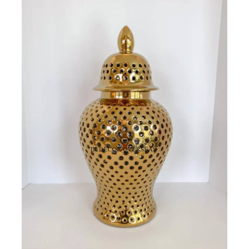 High Grade Gold Plated Unique Stylish Designer Heavy Duty Metal Ginger Jar And Vase Kitchenware Accessories Supply From India