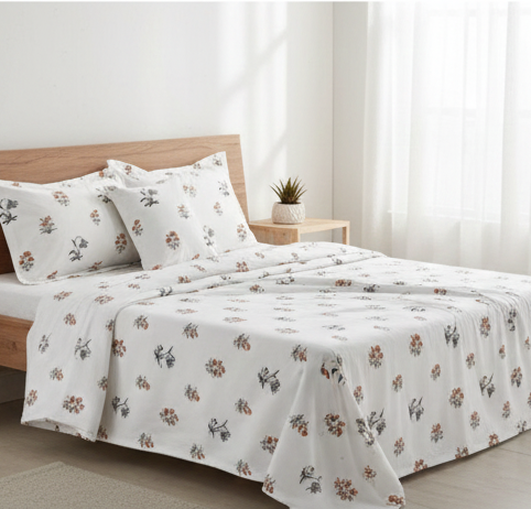 High Grade King Size 100% Cotton Bed Sheet 93x108 Crafted Soft Nonwoven Fabric Moisture Absorbent 130GSM Wrinkle Resistant
