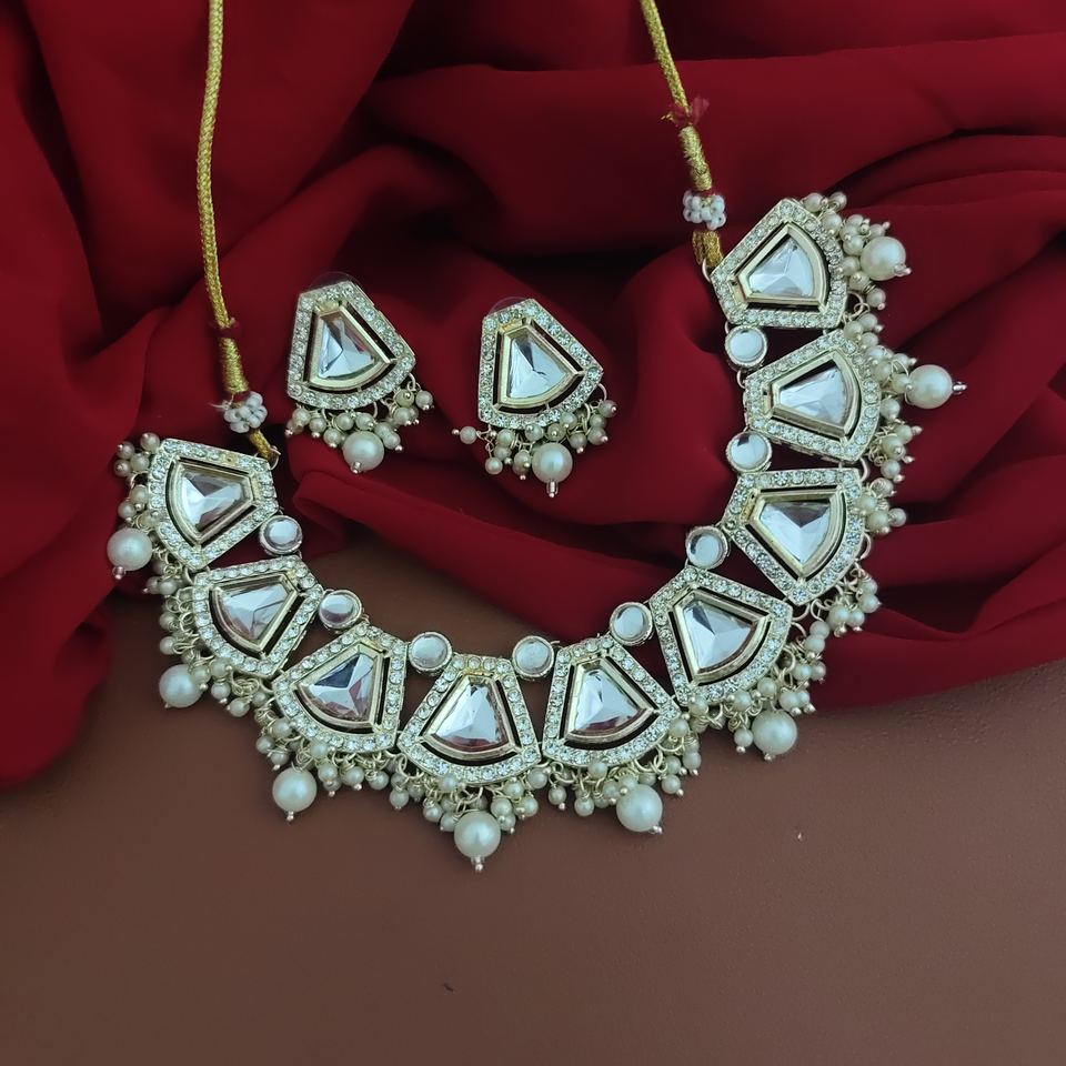 Product Name:Kundan Pearl Choker Necklace Earrings Set-1