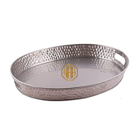 High-Grade Stainless Steel Oval Serving Tray Eco-Friendly Christmas Platter Pattern for Hotel Decorative Metal Dishes Plates