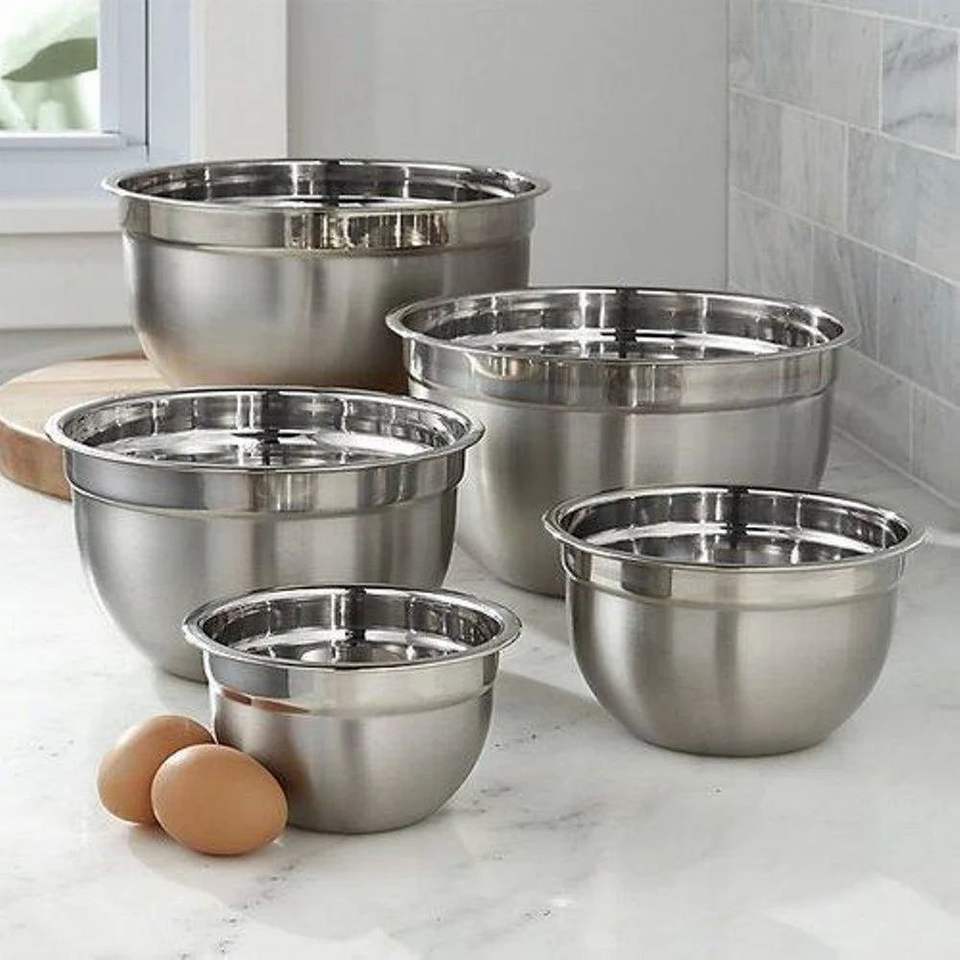 High Grade Stainless Steel German Mixing Bowls 5 Piece Set 750ml 8 Inch Polished Silver Plain Kitchen Microwave Safe Bowl