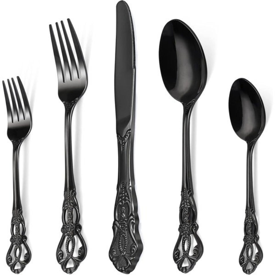 High Grade cheapest price modern Design elegant Style Stainless Steel black Plated Flatware Set With Embossed Design handle
