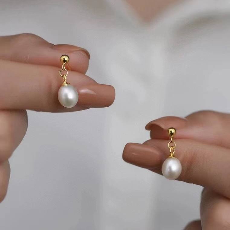 High Heel Ear Hooks 5A Quality 8-11mm Round Freshwater Pearl Dangle Earrings 925 Silver Fashionable