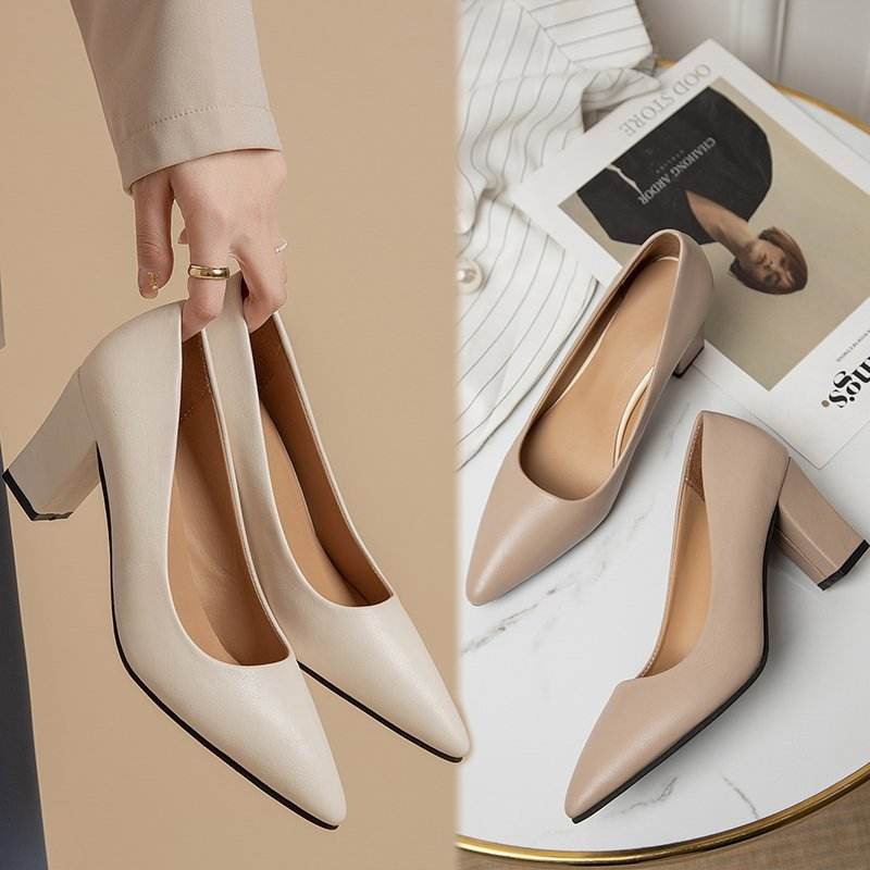 High Heels Women New Korean Style Pointed Shallow Mouth Thick Heel Fashion Shoes Sapatos De Mujer