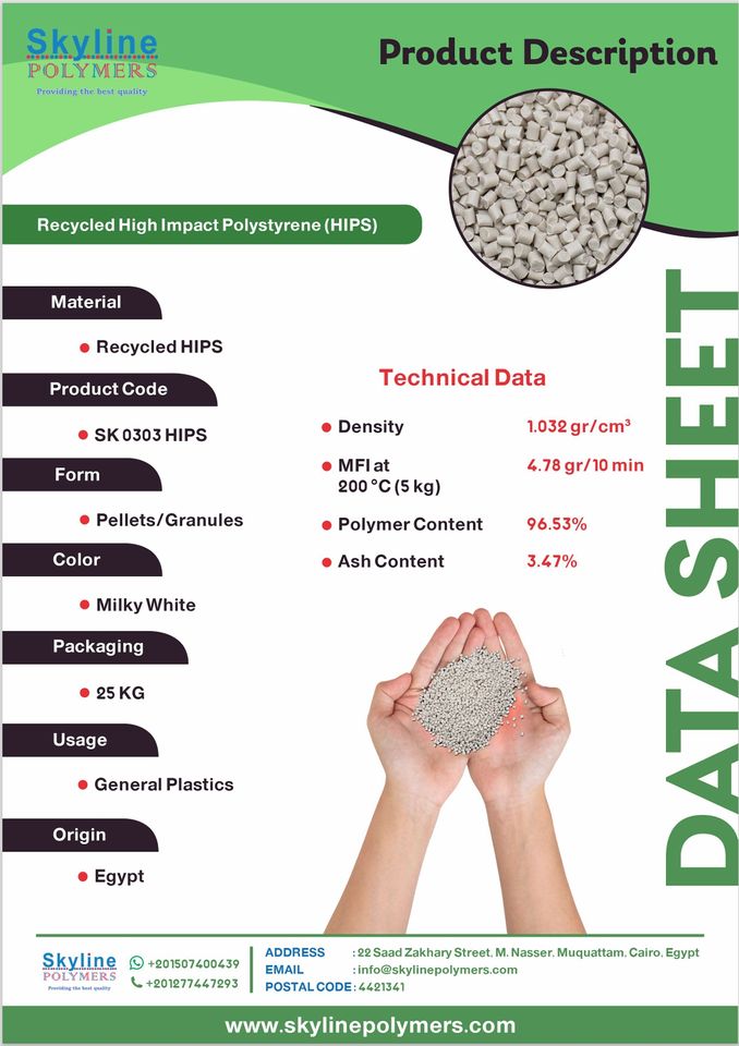 High Impact Polystyrene (R-HIPS) White Recycled Molding Grade Pellets Impact-Resistant Pattern HIPS Granules