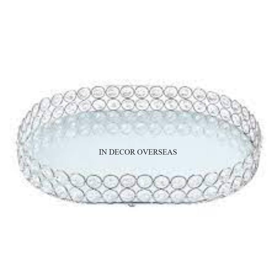 High In Demand Oval Shape Premium Quality Mirror Serving Tray With Clear Crystal Beaded Designer Borders In Impressive Price