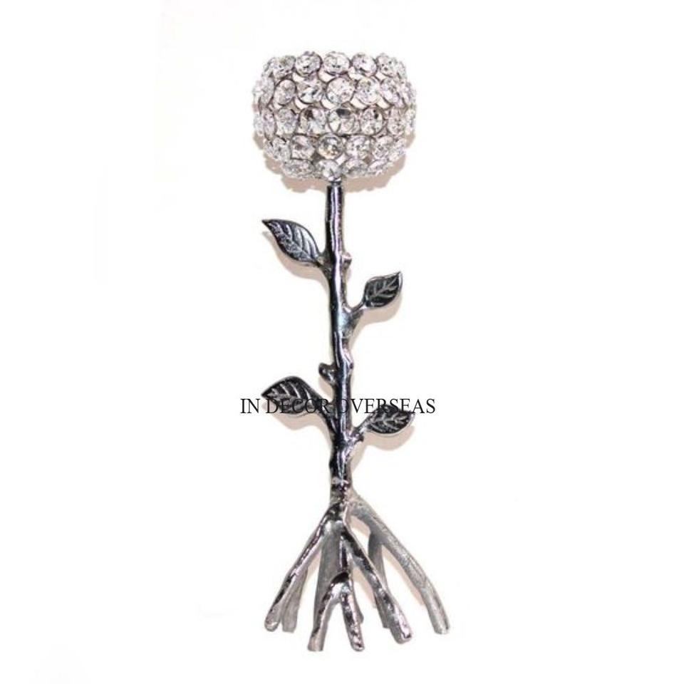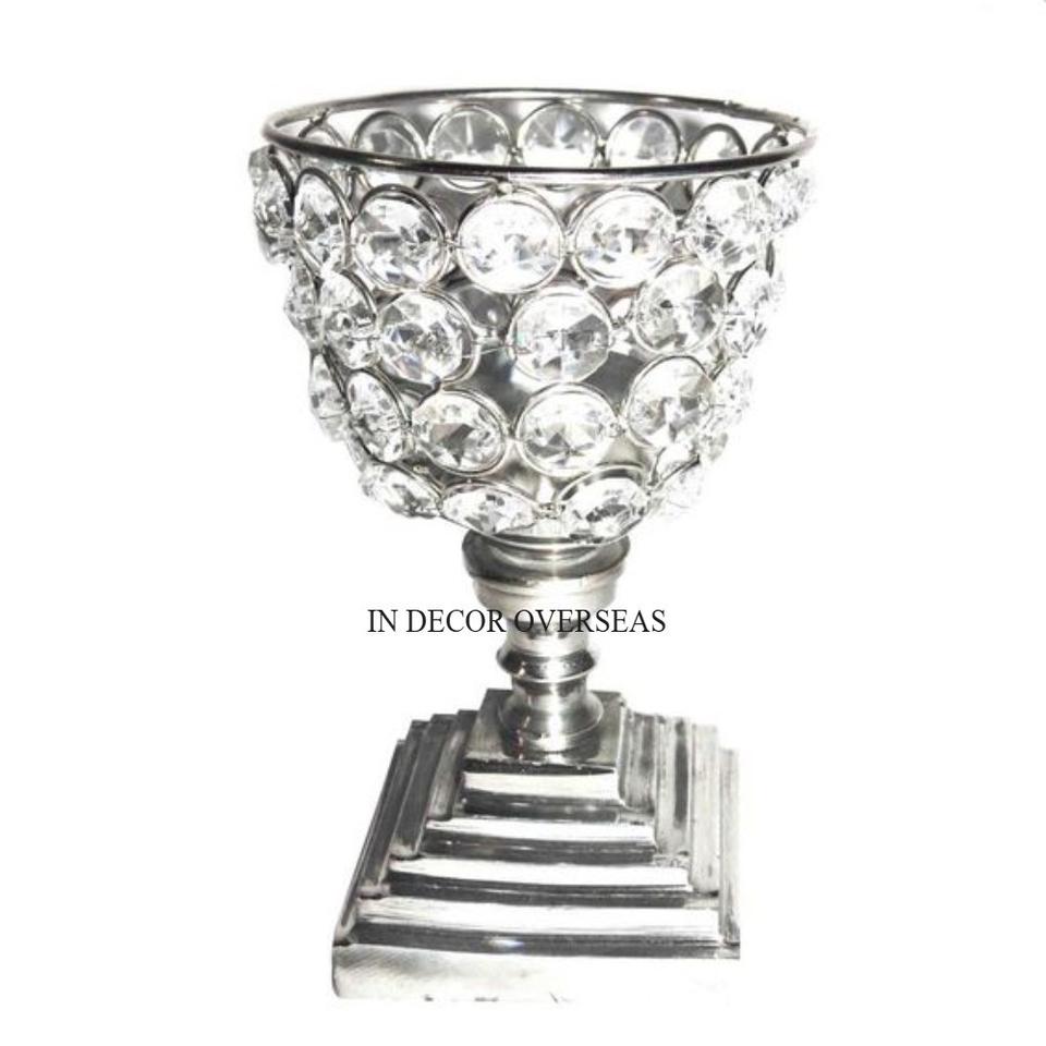 High In Demand Silver Shiny Polished Metal & Clear Crystal Beaded Attractive Look Wedding Table Centerpiece Decor Candle Votive