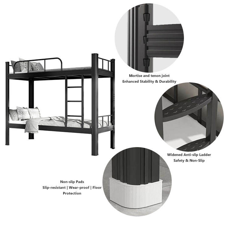 High Load-Bearing Iron Metal Twin Bunk Bed with Ladder Foldable Design Customizable Size for School Dormitory Bedroom