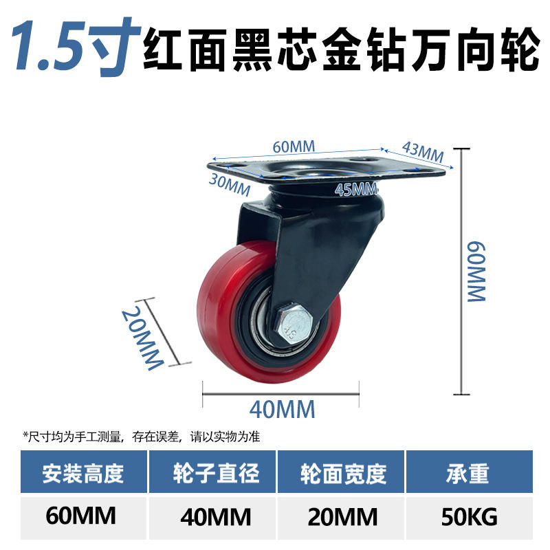 High-Load Brake-Equipped Plastic Directional Casters 2-Inch 1.5-Inch Universal Wheels for Warehouse School Furniture Dining