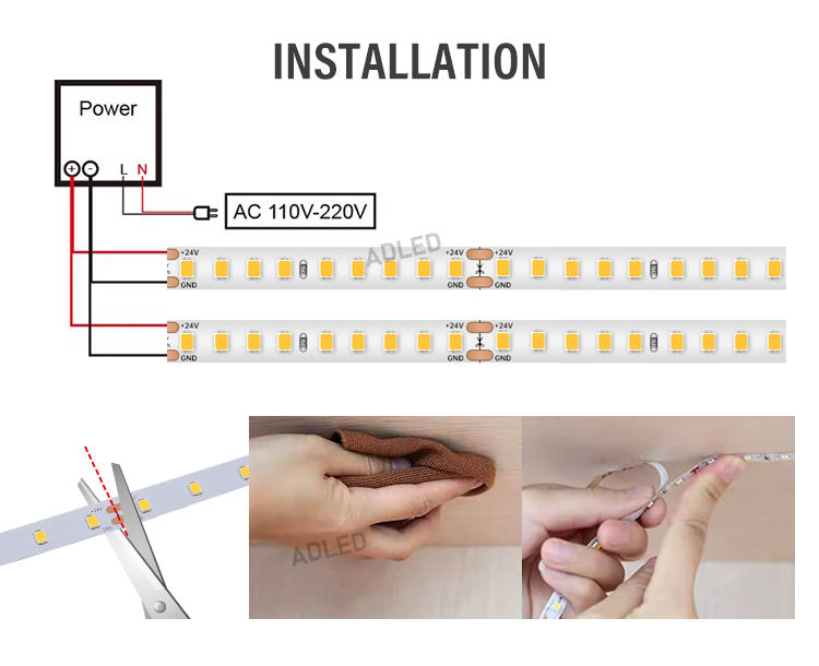 High Lumen 200LM/W SMD2835 144leds/m High Efficiency SMD LED Strip DC24V 8mm CRI90 IP65 Waterproof Soft Light Modern Home Decor