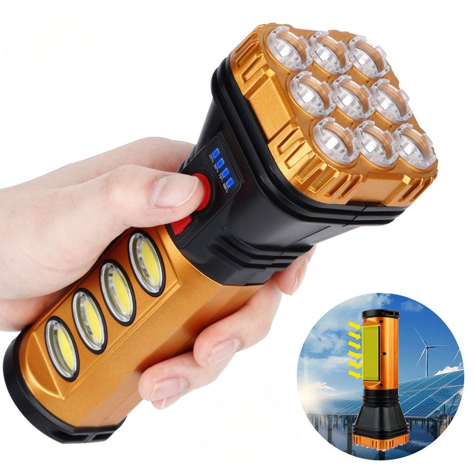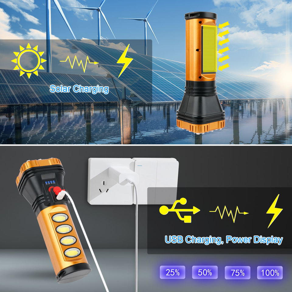 High-Lumen Solar-Charging LED Flashlight Multi-Mode Handheld Work Lightwith Waterproof COB Side Light Ideal for Outdoor Camping