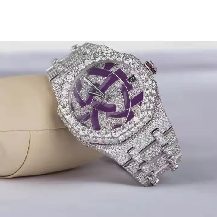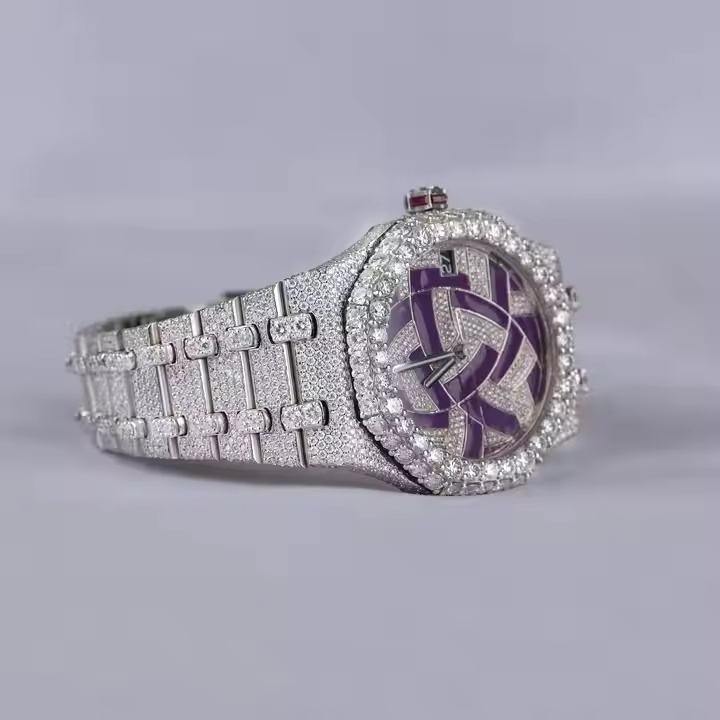 High Luxury White Gold Leather VVS Moissanite Antique Men's Watch Sapphire Crystal Waterproof Stainless Steel Iced Mechanical