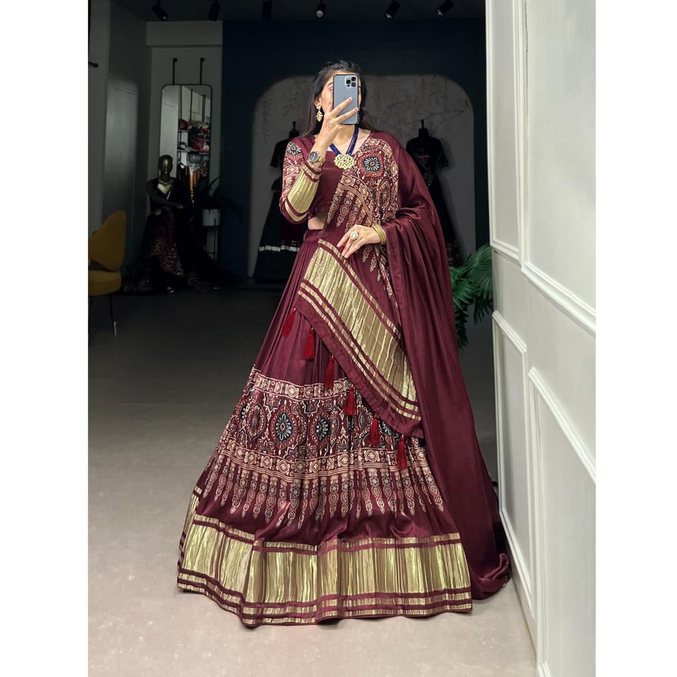 High On Demand Designer Gaji Silk Lehenga Choli Set with Embroidery Work for Bridal and Festive Wear Available for Best Price