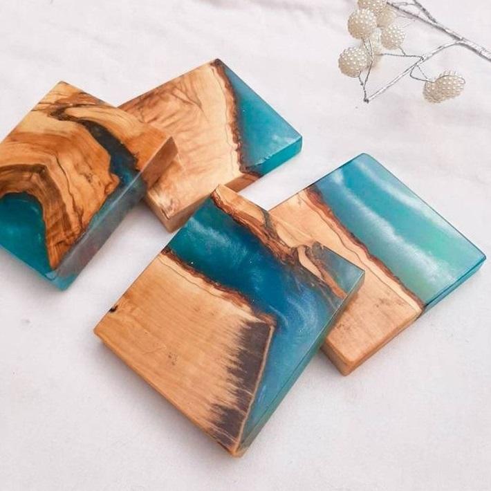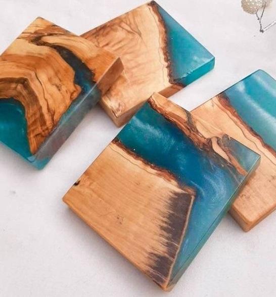 High On Demand Durable Epoxy Resin and Wooden Walnut Coasters for Restaurants Cafes Bars and Household Beverage Use