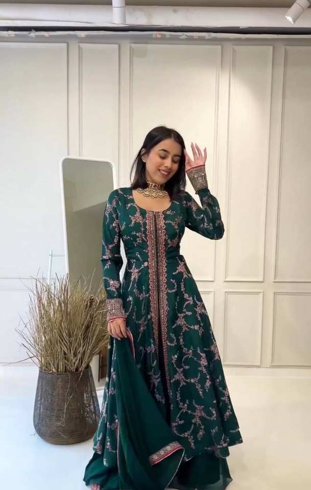 Work:Embroidery 5 mm Sequence Work With Full Sleeve With Tassels With Cups