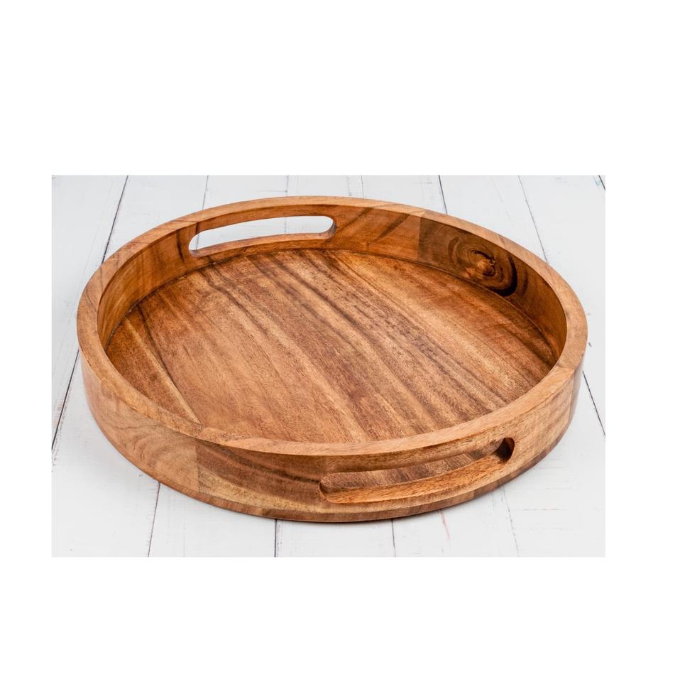 High On Demand Wood Round Tray Tea & Coffee Table Decorative Serving Tray Food Storage Platters for Serving Beverages
