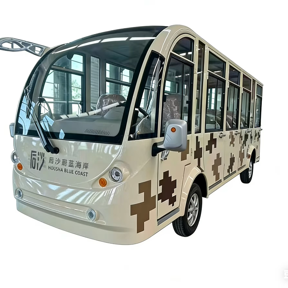 High Performance 14 Seater White Solar Powered Electric Sightseeing Bus Resort Tour Bus With Light Belt