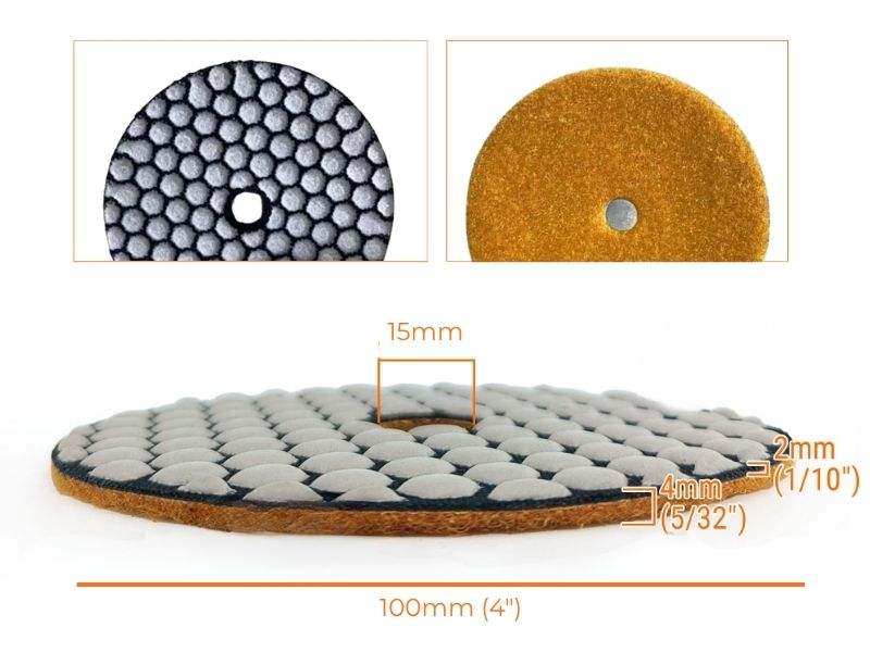 High Performance HGP OEM Medium Hardness 100mm Resin Diamond Abrasive Pad #0#5 Dry Polishing for Granite Marble Smooth Glossy