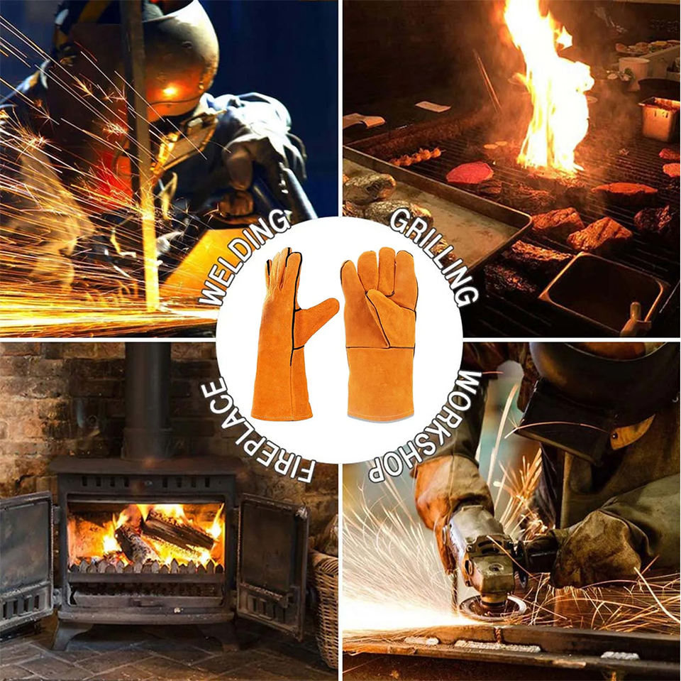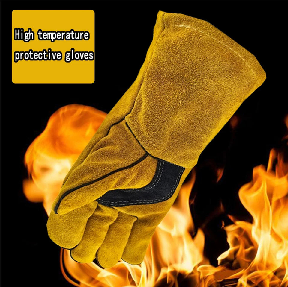 High-Performance Industrial Cow Split Leather Welding Gloves Heat Resistant with Cotton Fleece Lining Safety Gear for Welders
