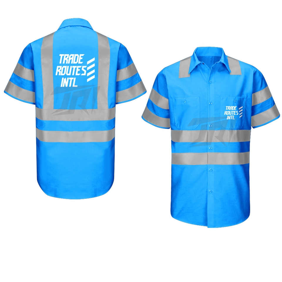 High-Performance Reflective Safety Overall Work Set Button-Up Bib Polyester Shirt Crew Necks for Construction Workers Factory