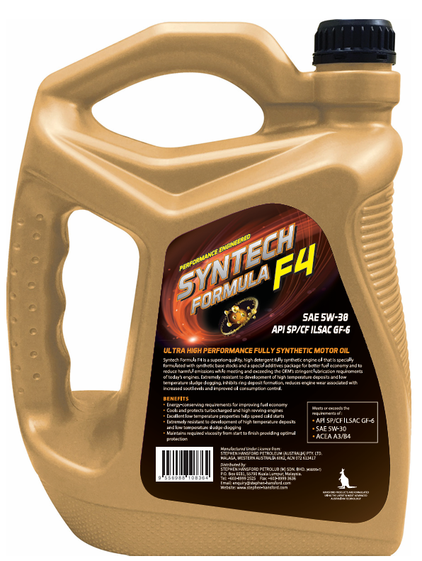 High Performance Syntech Formula F4 Fully Synthetic Engine Oil 5W30 API SN ILSAC CF-5 Ford Approved Formula