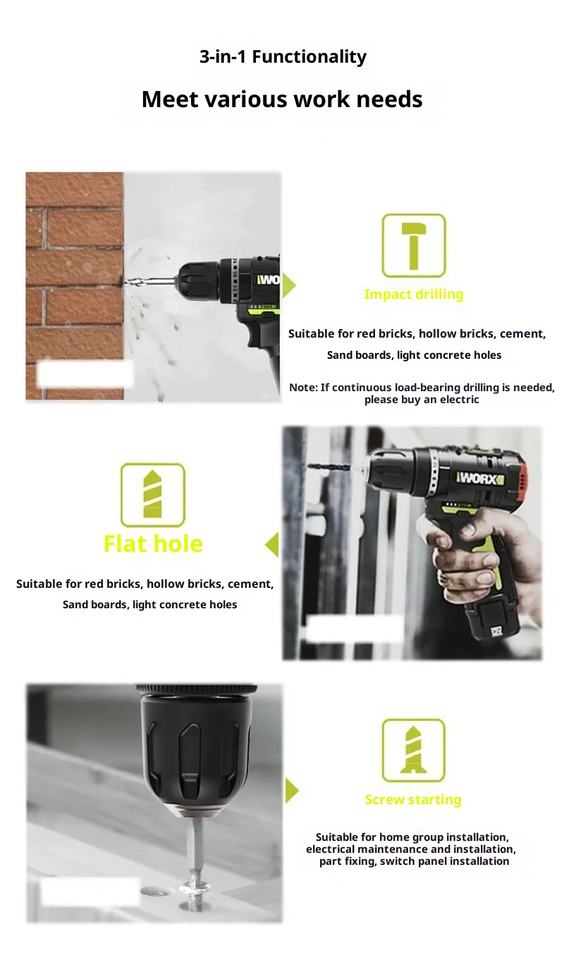 High - Performance WU131X 12V 10mm Lithium Carbon Free Dual Speed Impact Drill for Hand Drilling