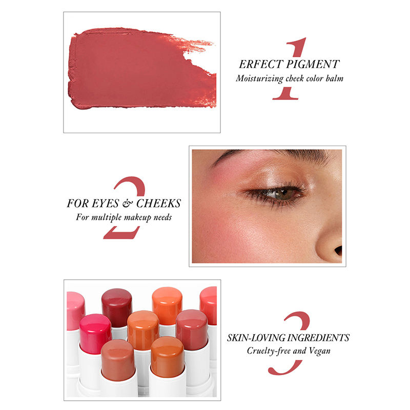 High Pigment Mineral Makeup Blush Stick Travel OEM Private Label Waterproof Sunscreen Cream Blusher Shimmer Matte Natural Finish