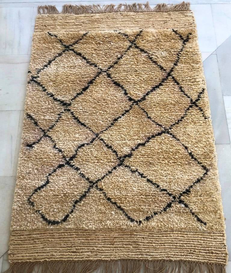 High Pile Moroccan Handmade Jute Area Rug Modern Hand Knotted Manufacturer for Heavy Traffic Areas for Kitchen Office Prayer