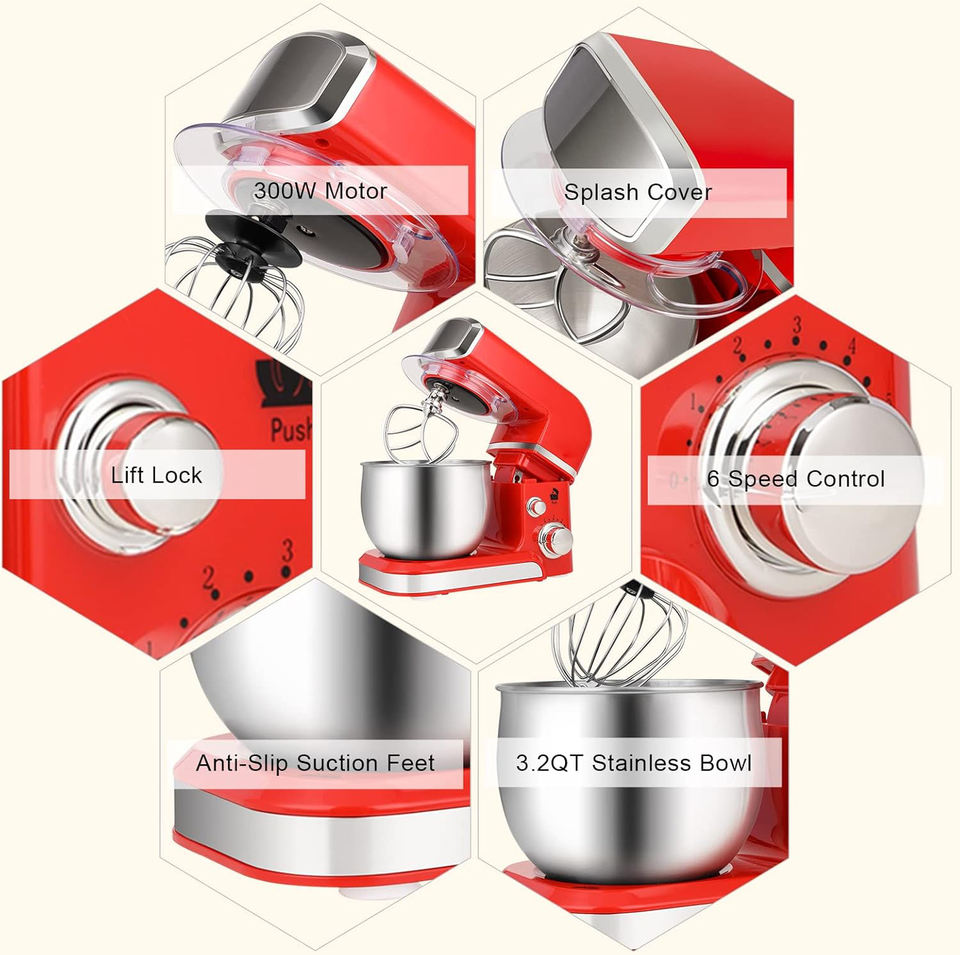 2L 250W Electric Food Mixer Stand Mixer with Stainless Steel Bowl and Egg Beater Attachments for Household & RV Use