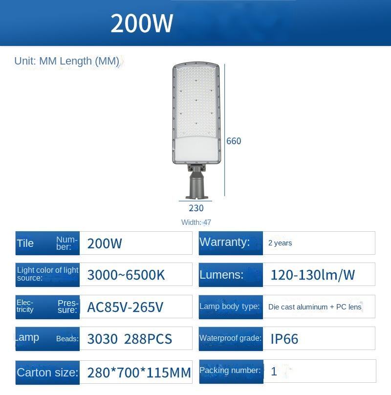 High Powered Aluminum Alloy AC/DC Road Street Light IP65 Waterproof 50W-200W Outdoor LED Street Light with 5-Year Warranty