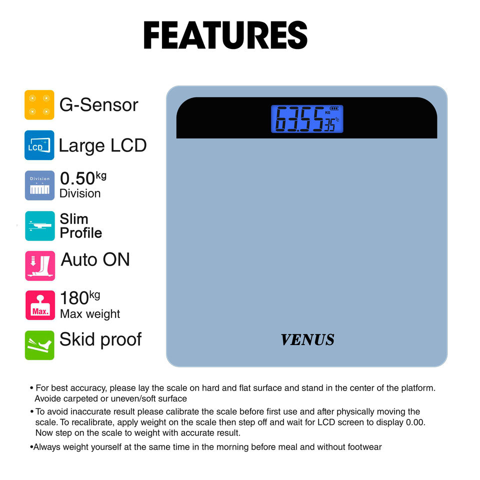 High Precision Bathroom Weighing Scale Tempered Glass Platform 180kg Capacity LCD Display Slim Body Durable Modern House Scale