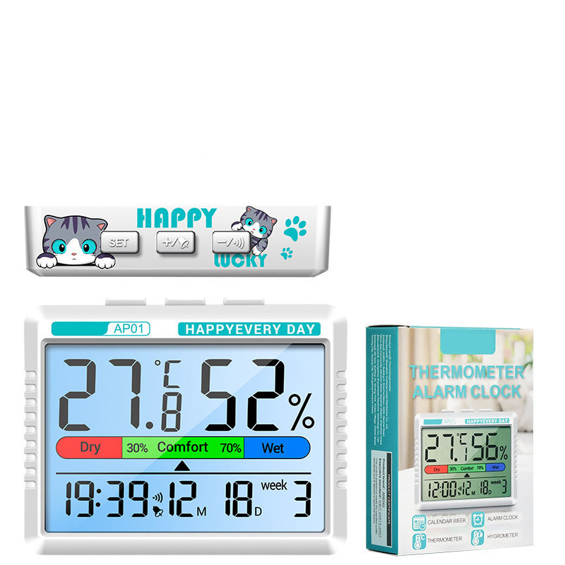 High Precision Digital Thermometer and Hygrometer Smart Clock Wall-mounted Alarm Clock for Home Study with Large Display