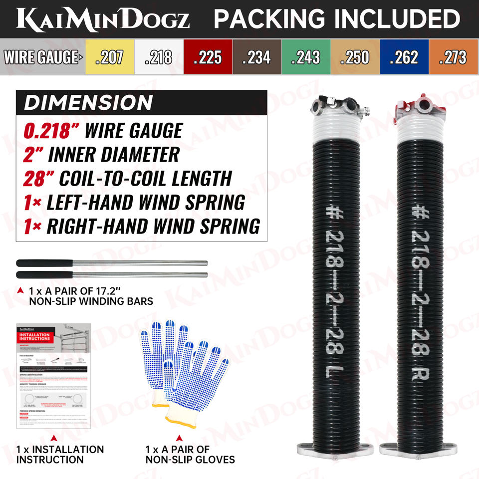 High Precision Electrophoresis Pair of 0.218X2"X28" Garage Door Torsion Springs Set Non-Slip Winding Bars Gloves