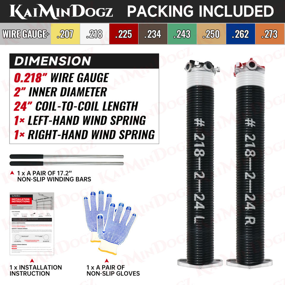 High Precision Electrophoresis Pair of 0.218X2"X24" Garage Door Torsion Springs Set Non-Slip Winding Bars Gloves