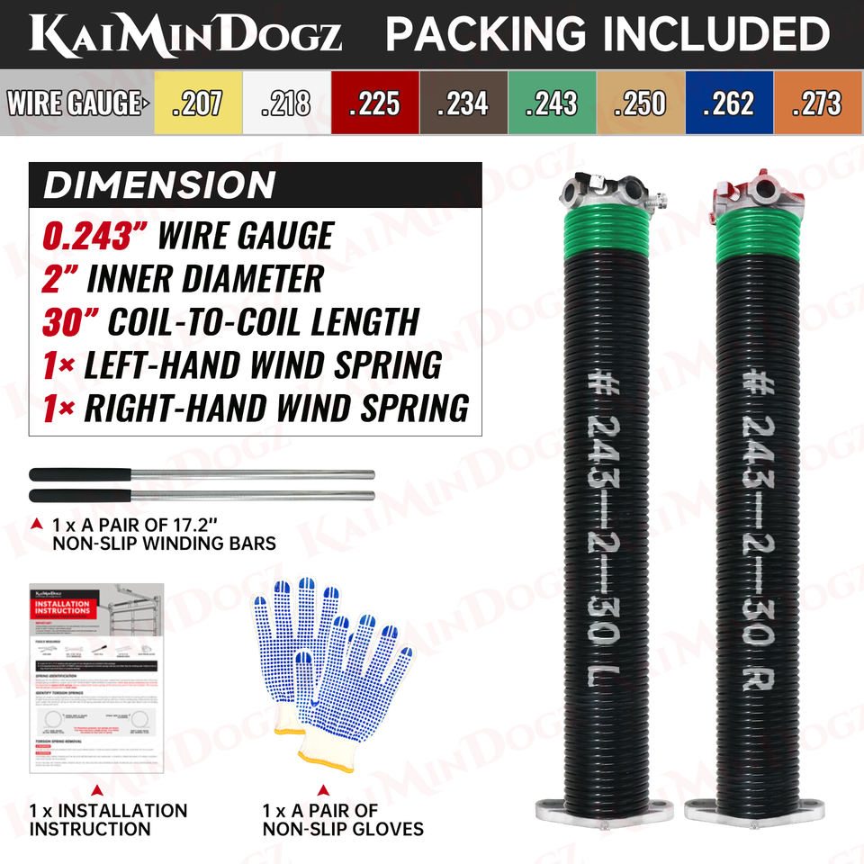 High Precision Electrophoresis Pair of 0.243X2"X30" Garage Door Torsion Springs Set Non-Slip Winding Bars Gloves