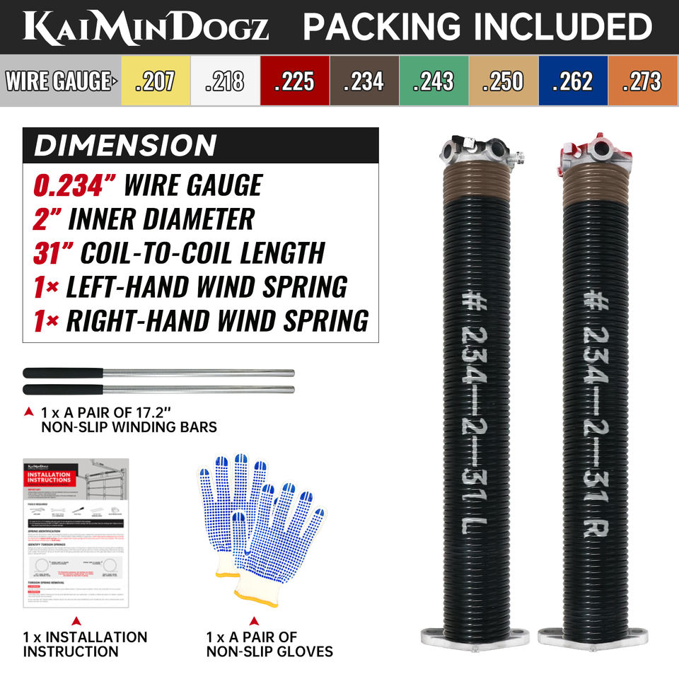 High Precision Electrophoresis Pair of 0.234X2"X31" Garage Door Torsion Springs Set Non-Slip Winding Bars Gloves