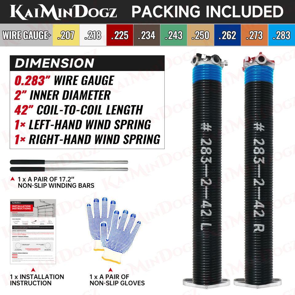 High Precision Electrophoresis Pair of 0.283X2"X42" Garage Door Torsion Springs Set Non-Slip Winding Bars Gloves