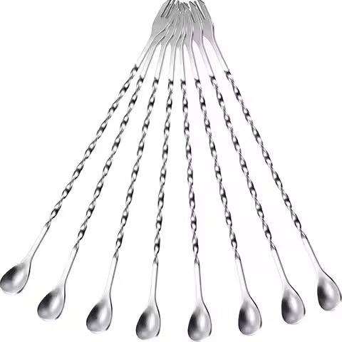 High Premium Food Grade Stainless Steel Cocktail Stirrer Twisted Handle Reusable Swizzle Spoons for Hotel Party Use-Most Selling