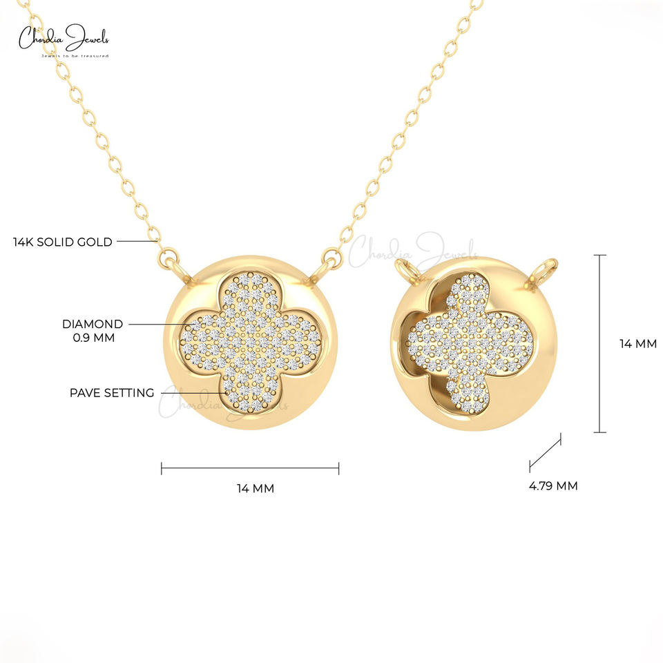 High Quality 0.9mm Natural White Diamond Necklace 14k Solid Gold Pave Diamond Clover Necklace Best Selling Wholesale Jewelry