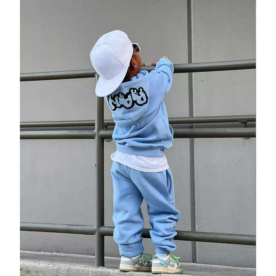 High Quality Polyester Cotton Blend Custom Logo Boys Sports Sweatsuits Breathable Winter Casual Track Pants Included Kids