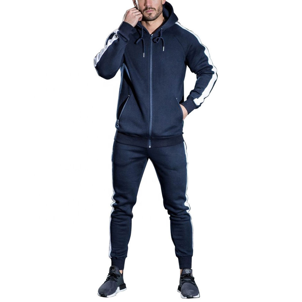High Quality 100% Cotton Custom Winter Hooded Men's Jogging Sports Two-Piece Pants Set Track Tech Suit