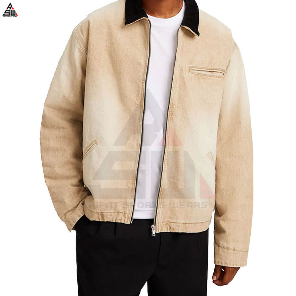 High Quality 100% Cotton Canvas Denim Jacket for Men Casual Style Solid Color Front Customized Logo Breathable Lightweight Thin