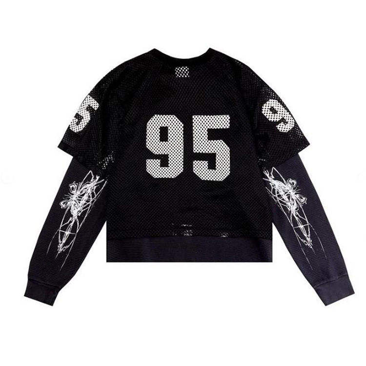 High Quality 100% Cotton Double Layered Long Sleeve Tshirt for Men Casual Hip Hop Printed Mesh Solid Pattern Customizable