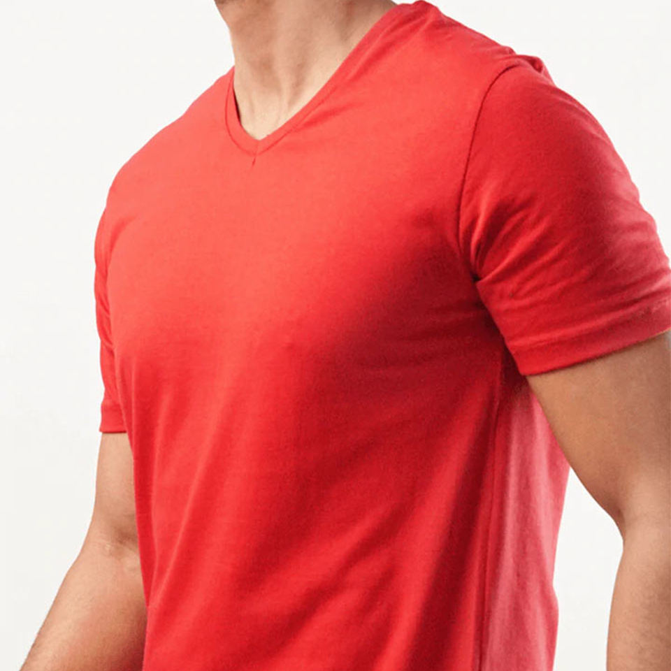 High Quality 100% Cotton Men's V-Neck T Shirts Fashion Design Slim Fit Solid Print Tops with Short Sleeves Gym Appropriate