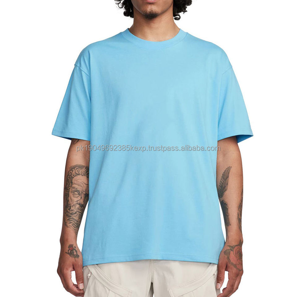 High Quality 100% Cotton O-Neck Short Sleeve Plain Loose Fit Drop Shoulder Heavyweight 300g Oversized T-shirt Men