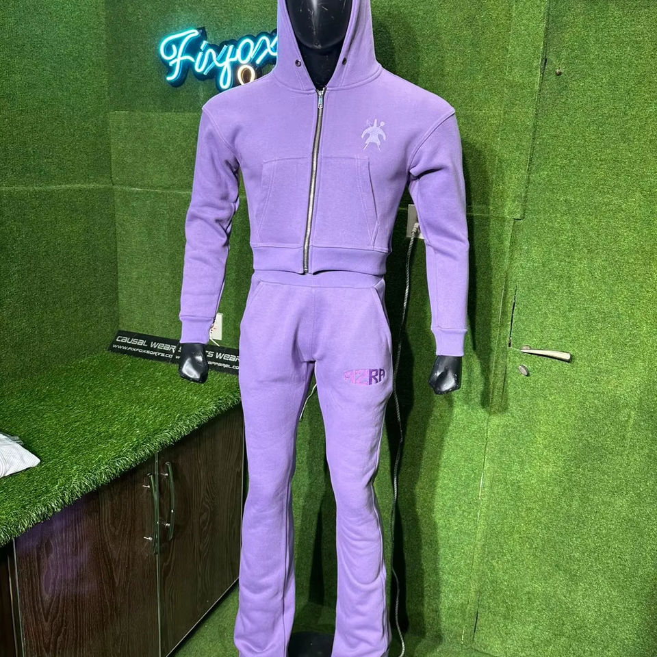 High Quality 100% Cotton Plain Design Cropped Hoodie Custom Print Sweatshirt Sweatpants Men's Drawstring Tracksuit Winter