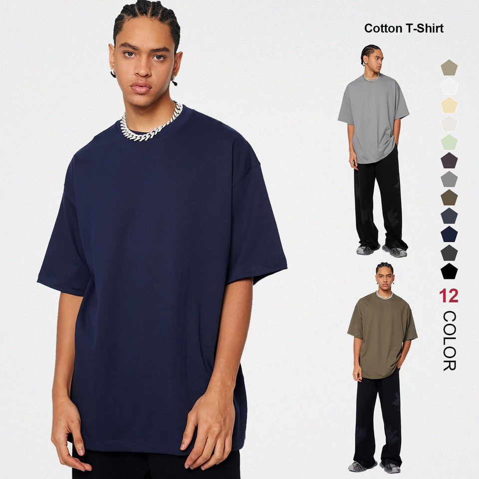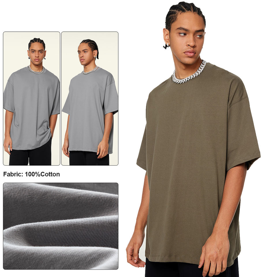 High Quality 100% Cotton Solid Knitted Oversized Heavyweight Blank Men's T-shirts with Custom Digital Printing