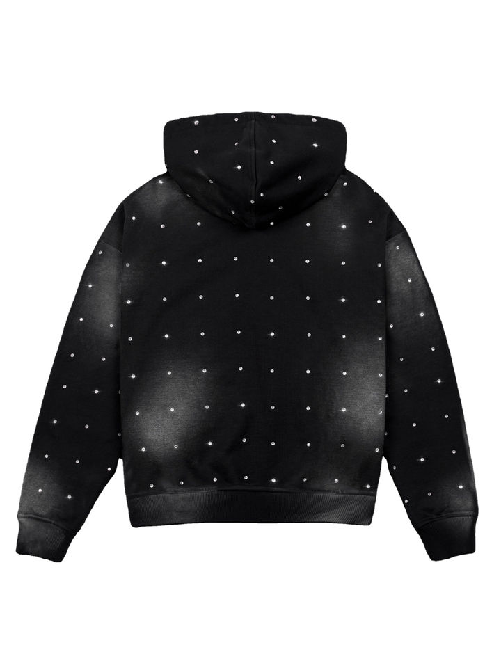 High Quality 100% Cotton Sun Fade Hoodie Custom Pullover Breathable Rhinestone Print Pattern French Fabric Size 6XL Clothing