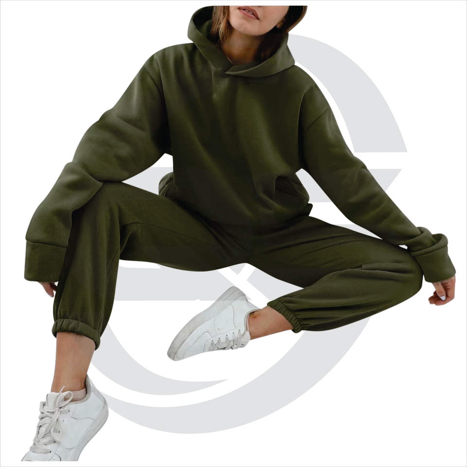 High Quality 100%Cotton Tech Fleece Women Tracksuit Plain Oversized Two Piece Tracksuit For Ladies