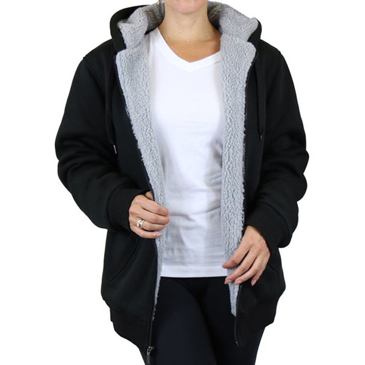 High Quality 100% Cotton Women's Casual Winter Pullover Hoodie Sherpa Lined Fleece Embroidered Badge Comfortable Sweatshirt